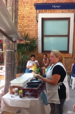 Os mais abastados podem esperar mais tarde abrir o Olympe, que fica a poucos metros da barraca da Tapioca. Recomendo ali o menu confiance, uma sucessão de pratos (da ordem de cinco, se contarmos a sobremesa) com o sabor maravilhoso produzido pelo Claude Troigros. O preço por pessoa é puxado: R$216. Sem dúvida, será necessário fazer muita economia na tapioca para chegar ao Olympe.